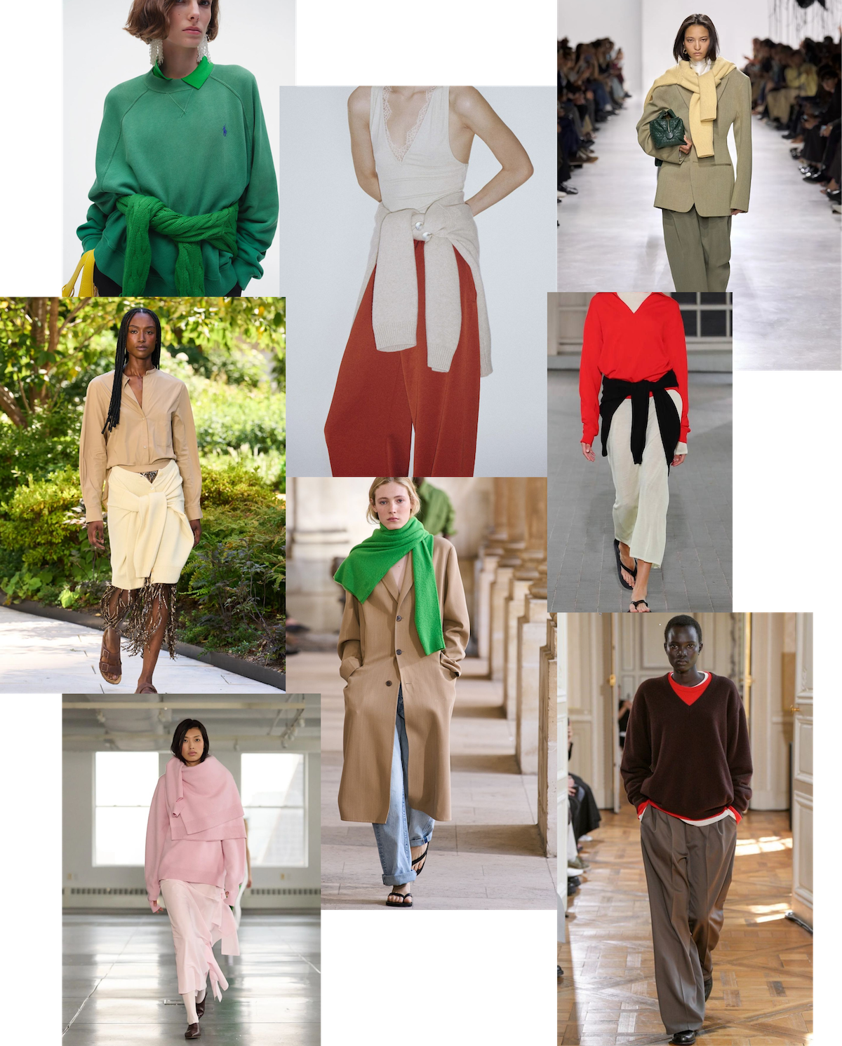 Double up two grey jumpers for texture, drape a yellow cashmere over a grey blazer, tie a beige knit around a pop of red. Look to the runway for endless styling opportunities with the humble knit.