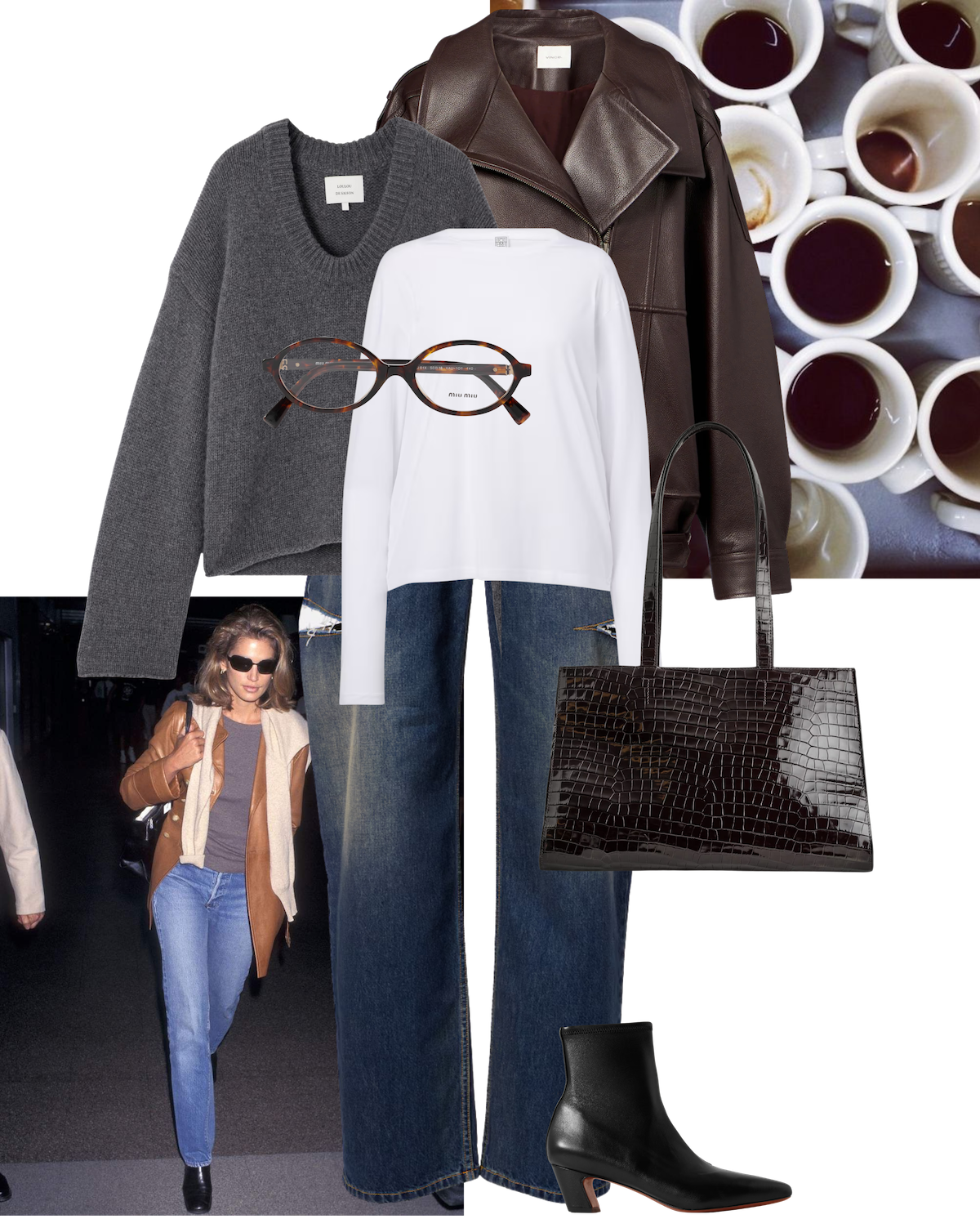 Knit | Leather Jacket | Tee | Glasses | Jeans | Bag | Boots