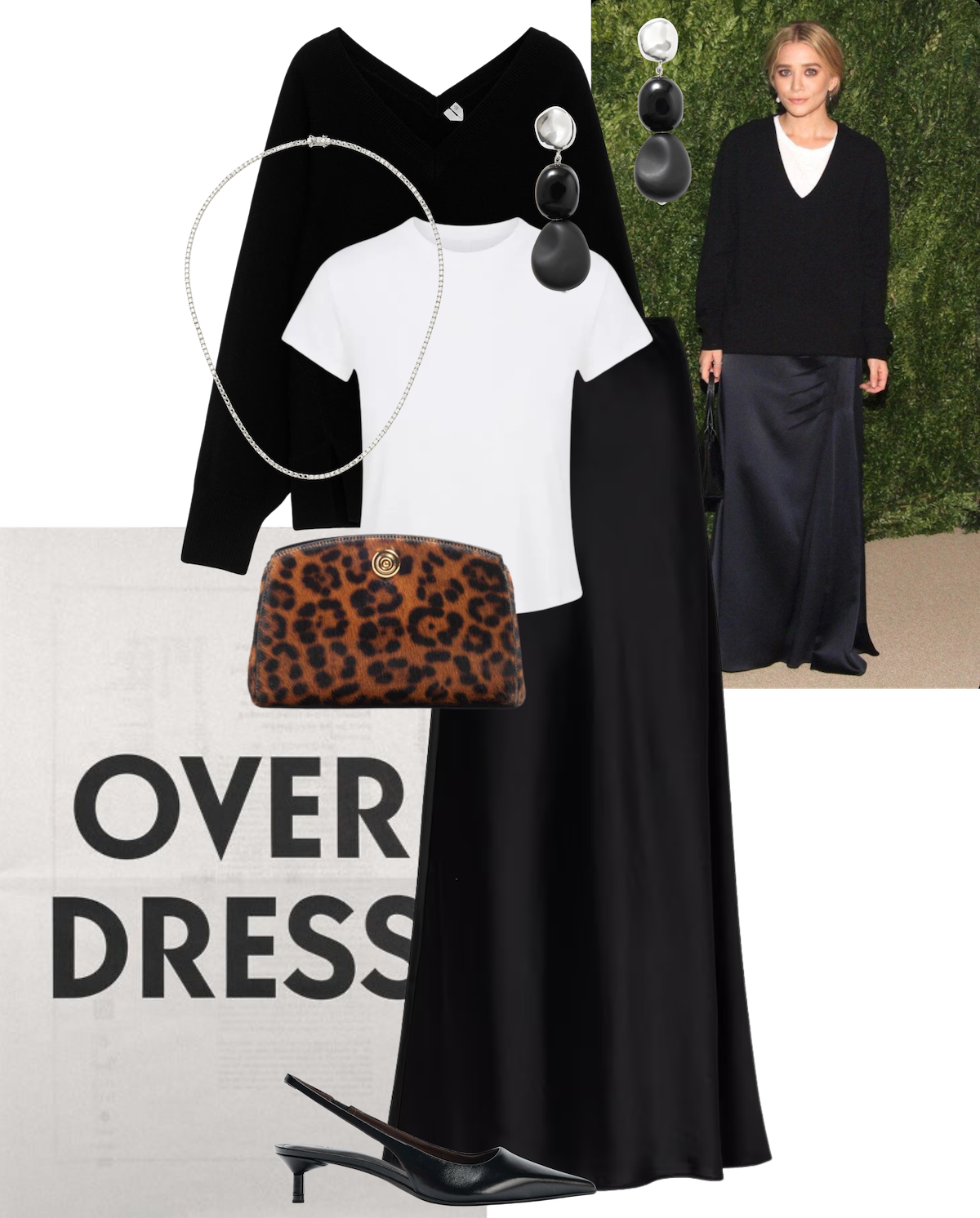 A V-Neck Knit with a silk skirt and heels for a smarter look