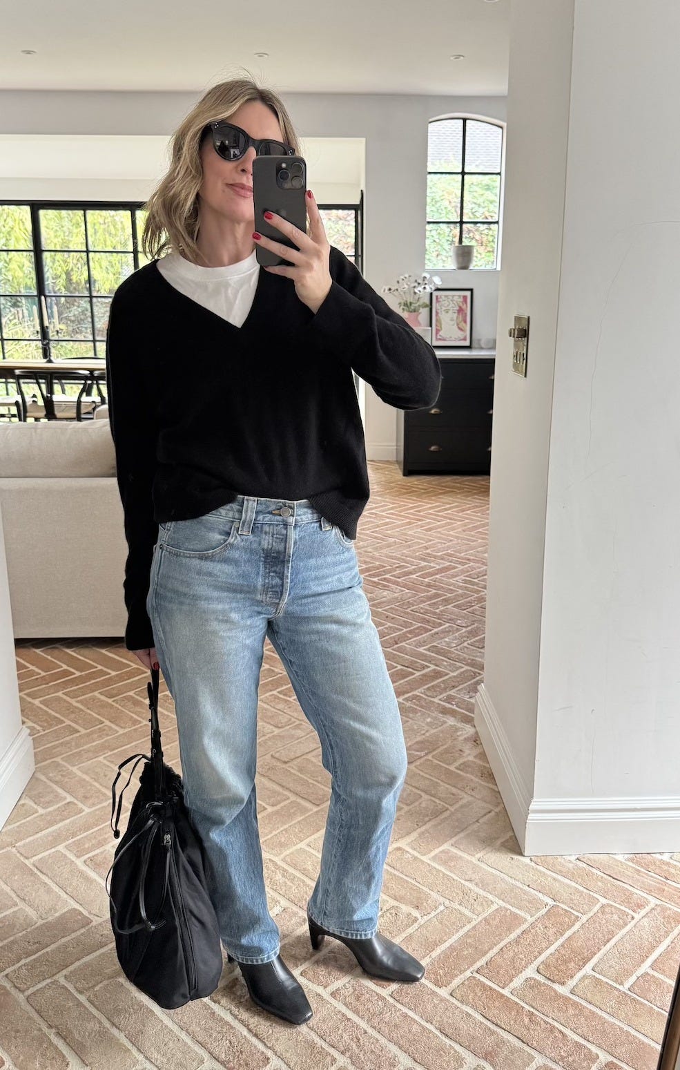 Cashmere | Tee | Denim | Boots | Bag | Sunglasses