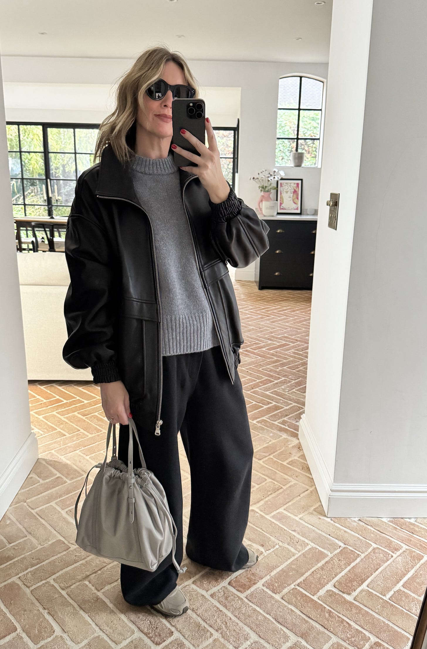 Sweatpants | Jumper | Leather Blazer (similar Here) | Trainers | Bag