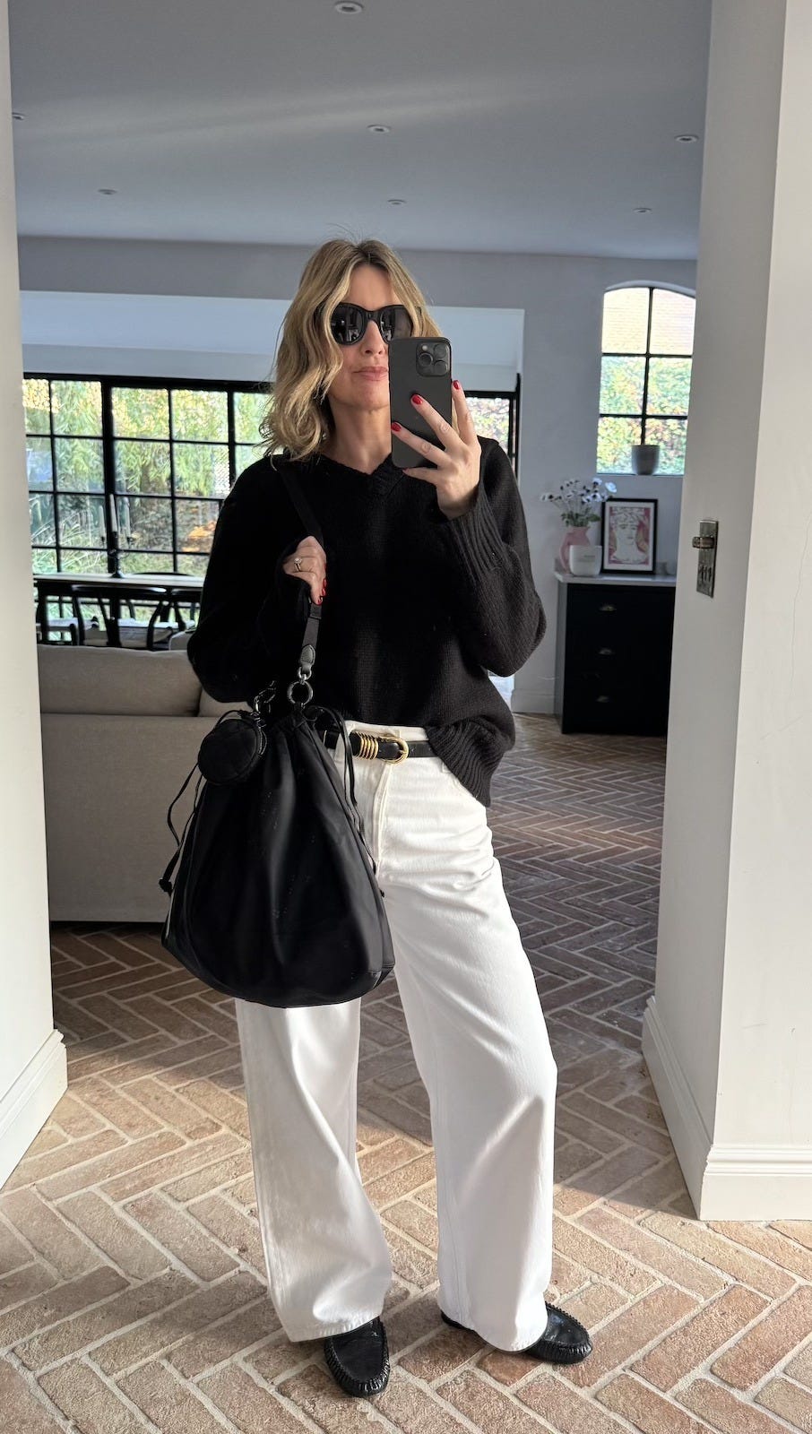 White Jeans | Cashmere | Loafers | Belt | Bag