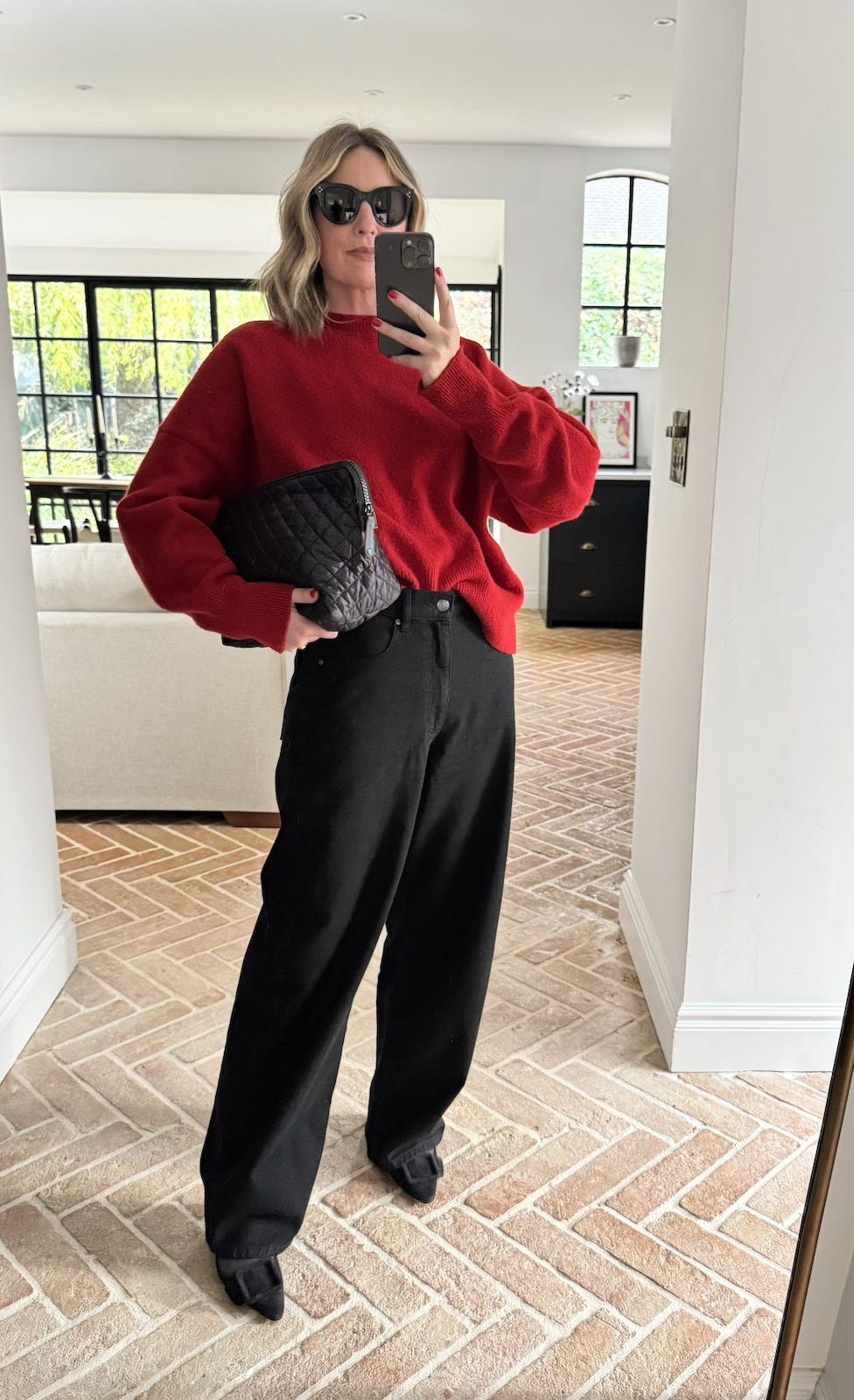 Sunday roast with friends so I went for a cosy knit and my favourite denim and grabbed my Zoey clutch bag for my cards, keys and lipstick.