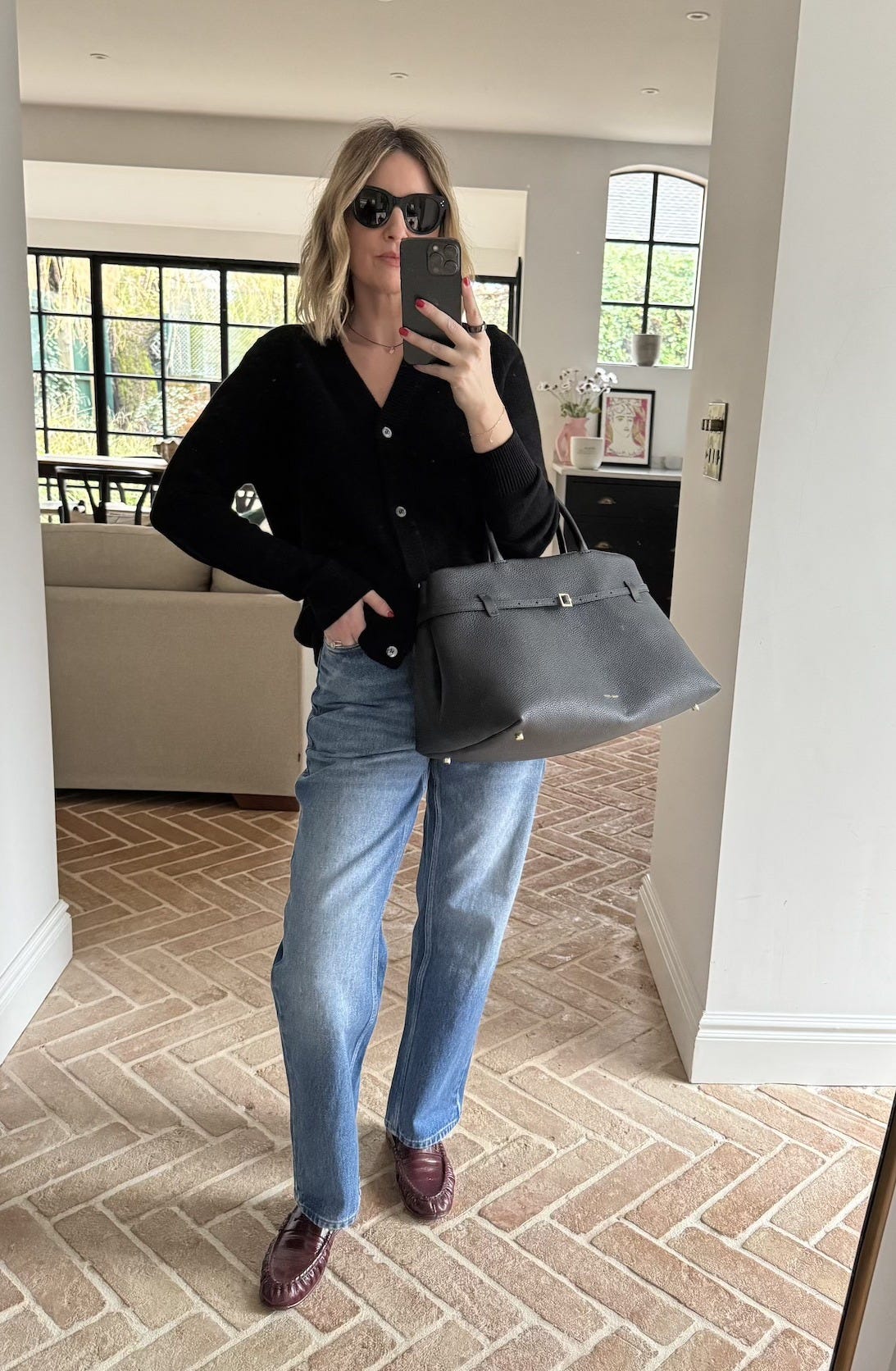 Cardigan (S) | Jeans | Loafers | Bag | Sunglasses