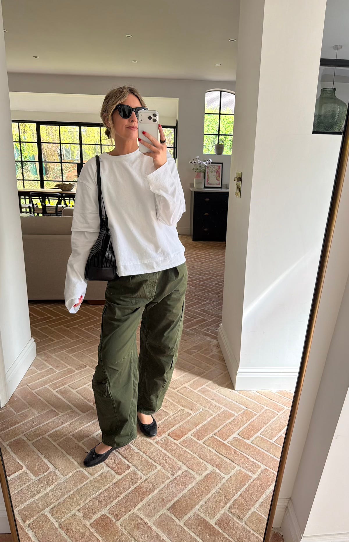 An outfit I definitely wore in the 90s. I love the relaxed fit of these Cargos, I’m usually a 26 in jeans and took a 27 in these. Teamed with a double layer Tee from Zara and those Dune Ballet Flats I can’t stop wearing. A simple every-day outfit.