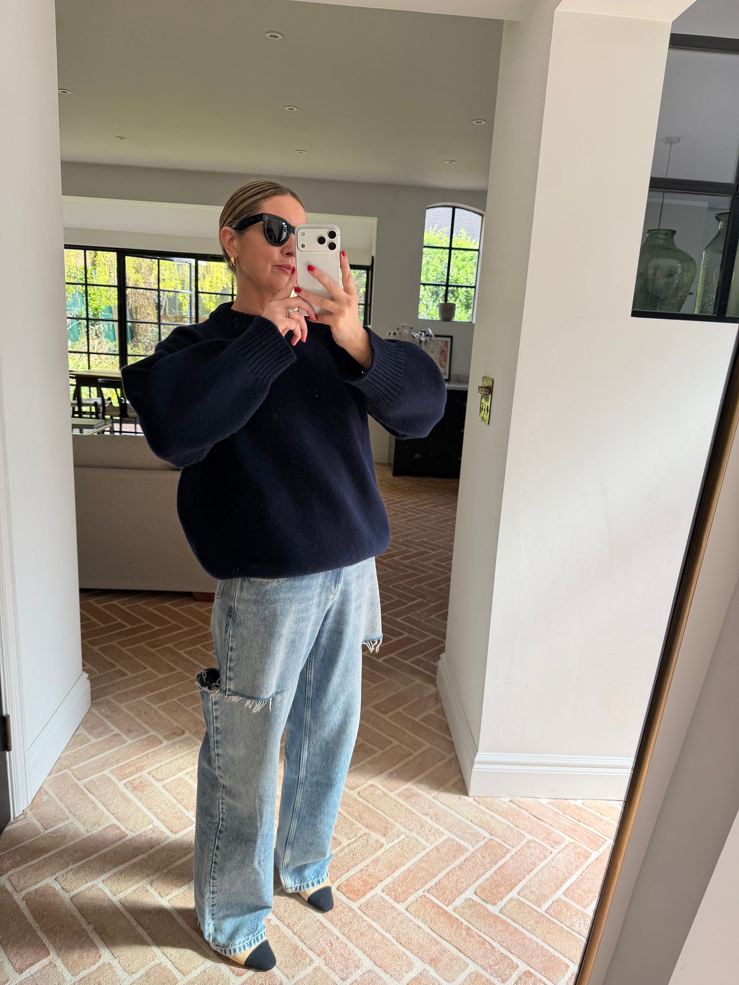 Same jeans with one of my favourite knits from & Daughter. Love a simple navy knit and denim jeans look for spring. Making the most of wearing my classic Chanel shoes during this sunny spell too.